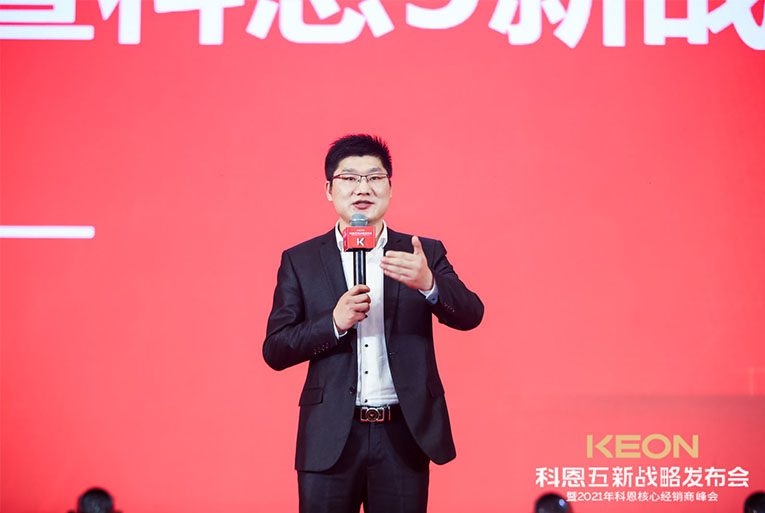 這一切成功的背后,除了有一支優(yōu)秀的鐵血團(tuán)隊(duì),還有各地經(jīng)銷商家人的支持陪伴,更重要的是有一位領(lǐng)航人不斷地探索。科恩電器董事長(zhǎng)俞鋒上臺(tái)致辭,宣布峰會(huì)正式開(kāi)始,“打造新科恩、重塑新科恩,再創(chuàng)科恩黃金十年”這一堅(jiān)定目標(biāo)和信念,伴隨洪亮的嗓音響徹全場(chǎng)。