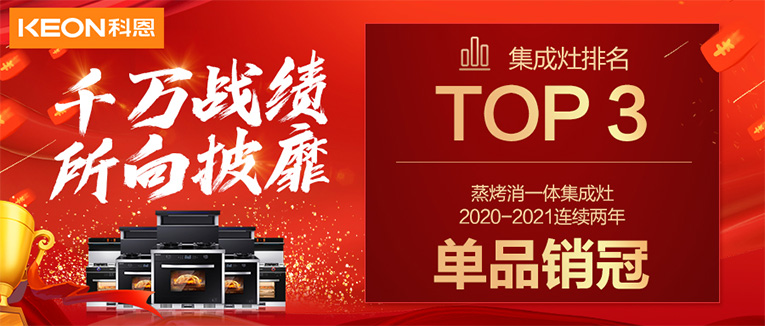 超級頭條!科恩集成灶京東雙11斬獲行業Top3,連續2年單品銷冠!