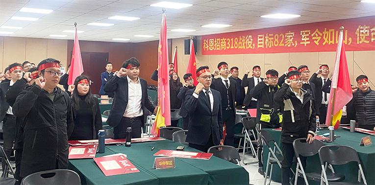 總指揮錢昌敏帶領(lǐng)公司各領(lǐng)導(dǎo)、各戰(zhàn)區(qū)作動員講話,并制定了本次招商峰會的戰(zhàn)略方向和執(zhí)行策略,提出作戰(zhàn)目標(biāo),希望每位科恩人能夠以百分百的狀態(tài)投入工作,以堅持不懈的精神砥礪前行。科恩集成灶在全國擁有近3000家專賣店,相信在大家的不懈奮斗下,將全力沖刺2022!