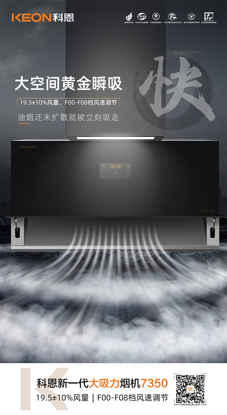 樂享智慧廚房,開啟美好食光~十大品牌科恩新一代大吸力煙機7350驚艷登場!