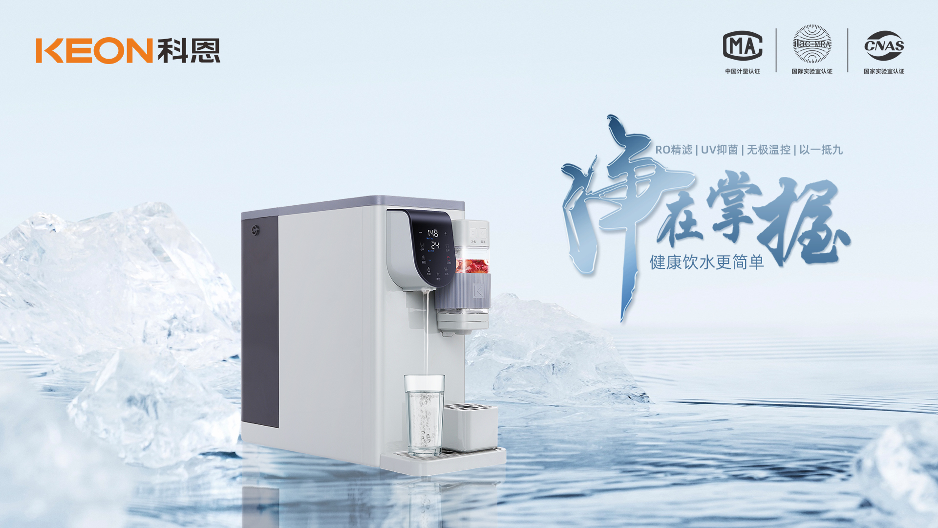 清晨早起的第一杯水,承載著一天的愉悅和舒心,科恩R6068集成式凈水器,精準控溫出水,無需在旁等待,定量自動取水,不溢杯不浪費,用一杯甘甜好水喚醒全身細胞,激活新陳代謝,元氣滿滿。科恩R6068免安裝自由擺放,客廳、廚房、臥室、書房,到哪都可以喝上放心水,溫度、水量、濾芯壽命實時顯示,水質監測,一目了然。RO反滲透技術,凈飲出水只需3秒,過濾精度高達0.0001微米,大約是頭發絲的百萬分之一,鮮活凈飲,凈在咫尺;旋轉式濾芯設計,一步到位,一旋一提,輕松更換,安全感滿滿,幸福感爆棚!