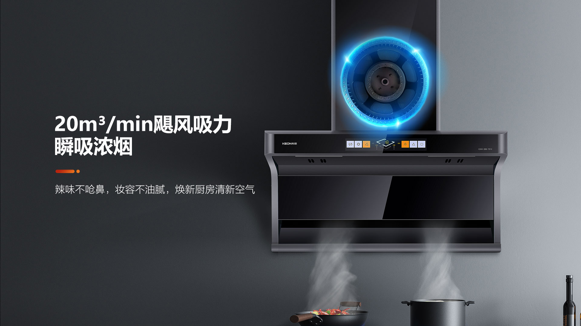 不愛(ài)下廚的理由千千萬(wàn):油煙抽不盡、味道散不出、滿室油膩膩、清潔難打理一定是阻礙我們廚藝進(jìn)階的頭號(hào)勁敵!選擇一臺(tái)好的煙機(jī),下廚煩惱一招便可迎刃而解,科恩7610頂側(cè)雙吸智能體感煙機(jī),上下雙吸組合出擊,配合颶風(fēng)大吸力,將油煙一網(wǎng)打盡,還你清新廚房!