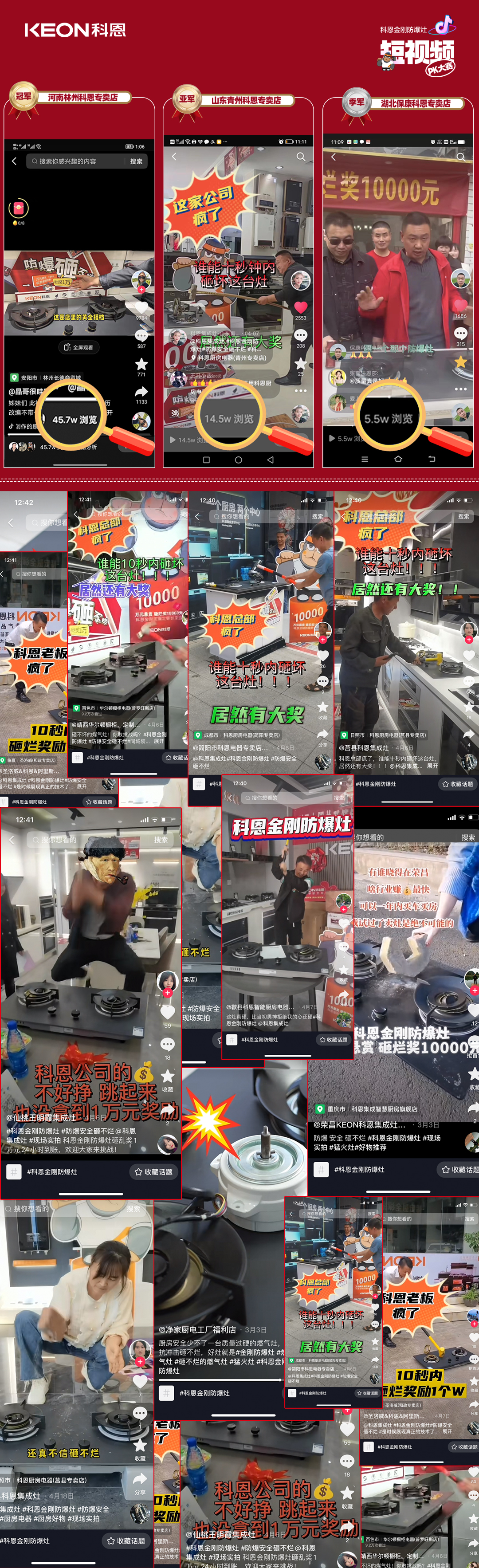 本次挑戰(zhàn)賽不僅掀起了科恩金剛防爆灶熱潮,更是讓經(jīng)銷(xiāo)商家人在挑戰(zhàn)賽中學(xué)習(xí)了如何通過(guò)新媒體推廣宣傳。在這其中,有質(zhì)疑的聲音、有信賴(lài)的聲音,同時(shí)也收獲了更多意向客戶(hù)。