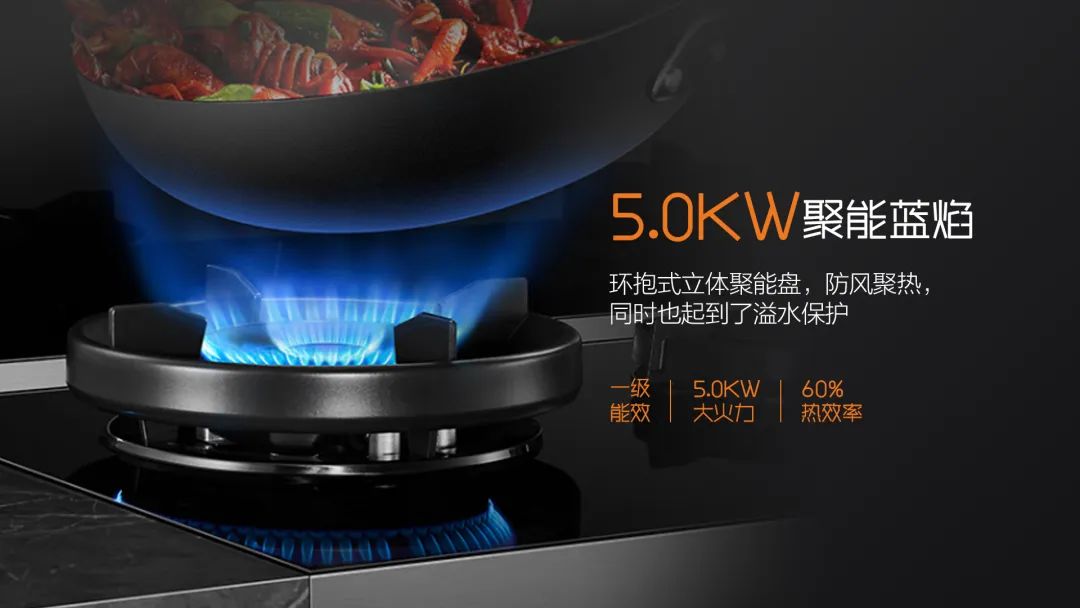 在火力上,A2蒸烤一體集成灶標配5.0KW大火力,可在短時間急速將食材烹制熟,更適合爆炒。