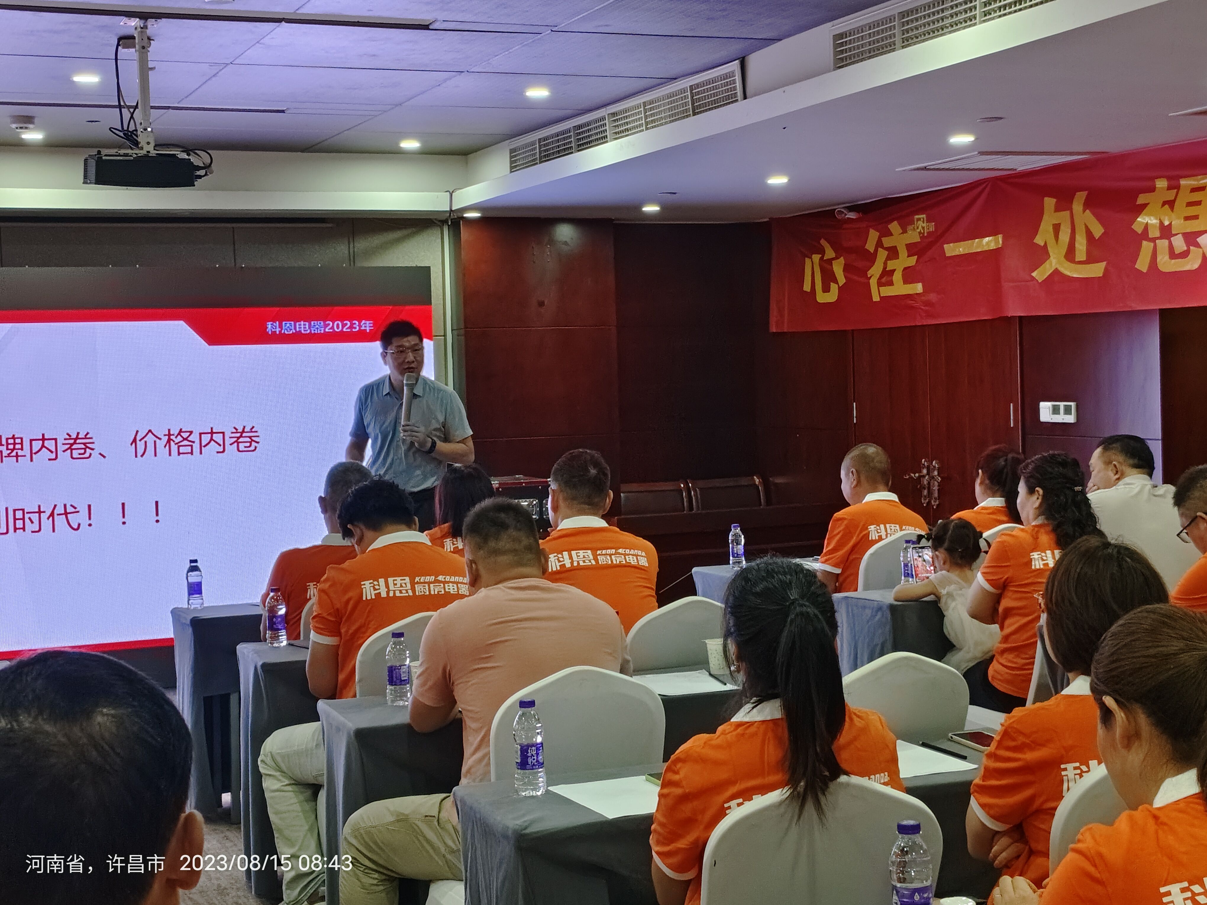 以客戶為中心,以幫扶客戶發展為己任,為了讓科恩經銷商更了解廚電行業發展趨勢,幫助經銷商轉型升級。2023年8月浙江科恩電器有限公司分別前往安徽、河南、四川、廣西四地,開啟經銷商培訓會。