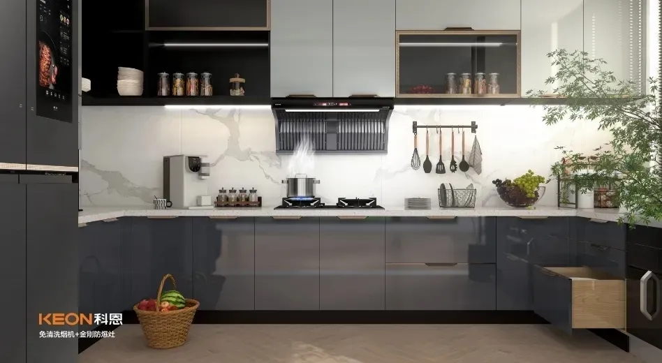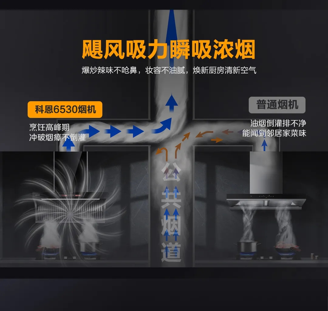 科恩6530免清洗油煙機+KN700金剛防爆灶,就十分符合中國家庭烹飪需求。