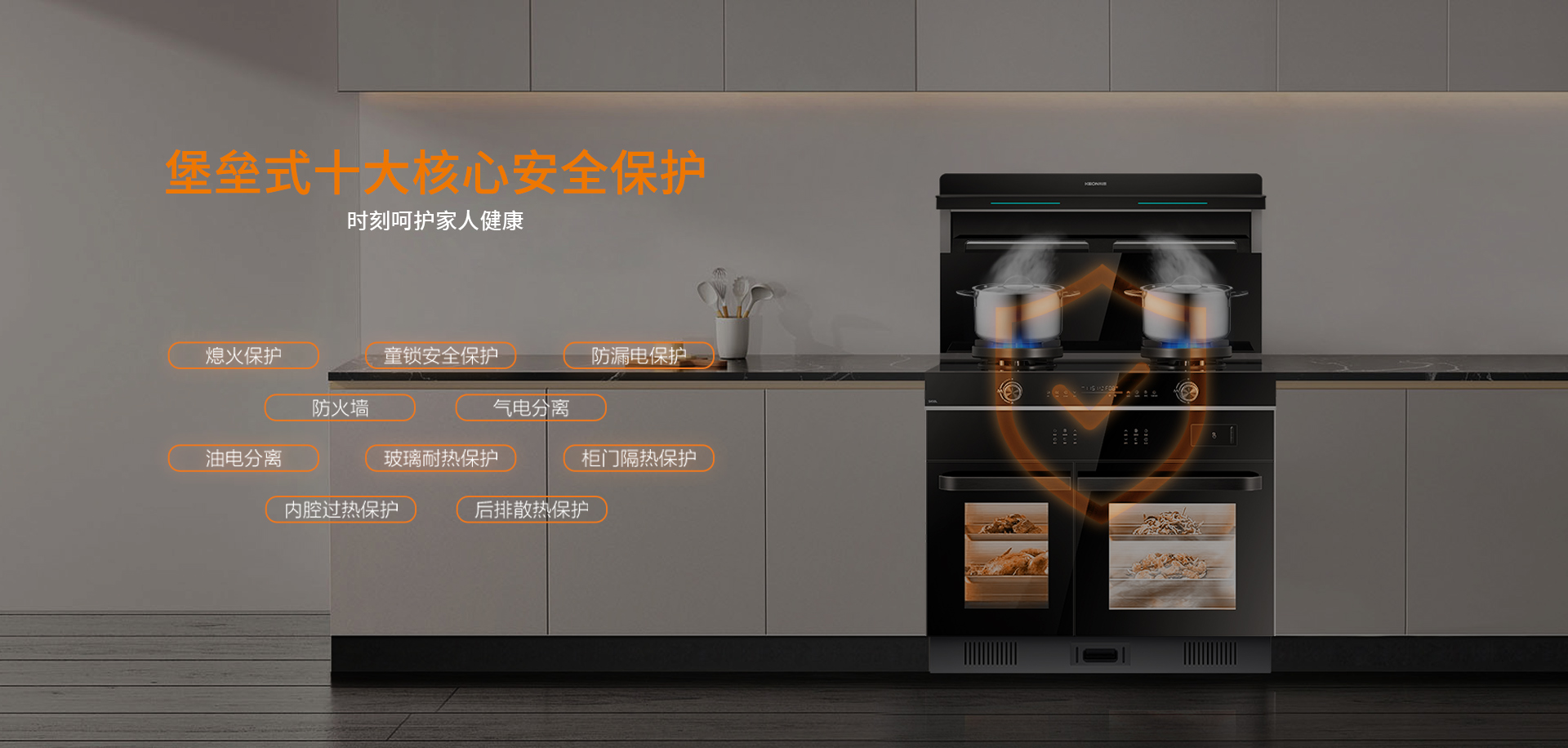 S450L蒸烤獨立集成灶風力可達23m³颶風吸力,真正實現消煙于源頭。同時,搭載智能變頻巡航功能,遇強則強,自動變頻增壓排煙,,即使做飯高峰期也能保障廚房清爽無異味。