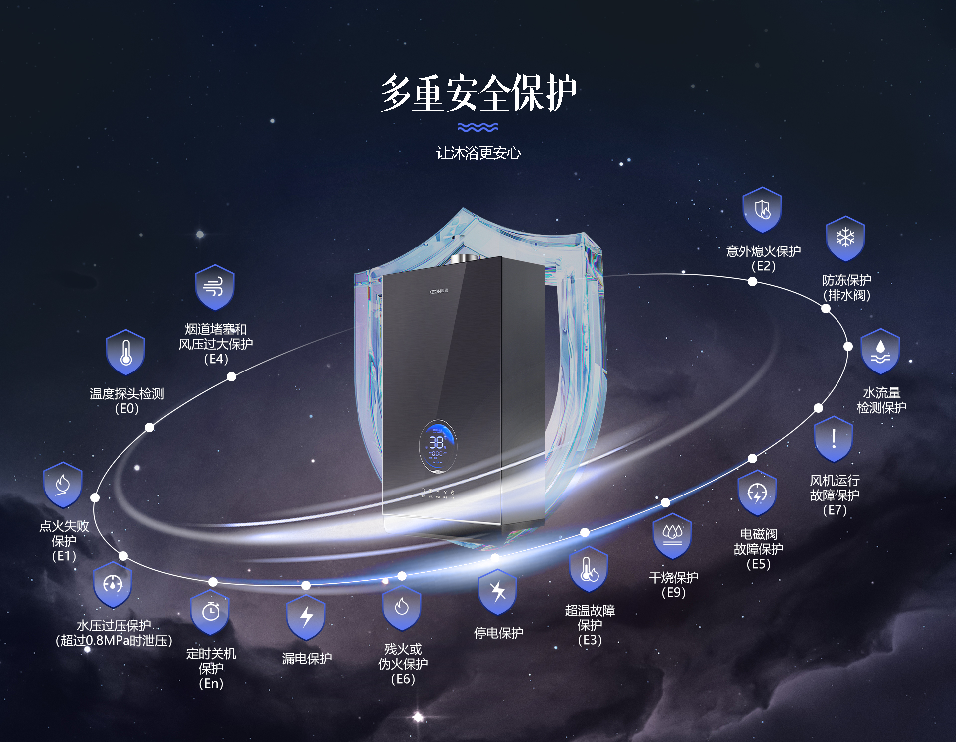 此外,科恩電器還特別注重產(chǎn)品的安全性,配備了14重防護(hù)措施,讓沐浴更安心。