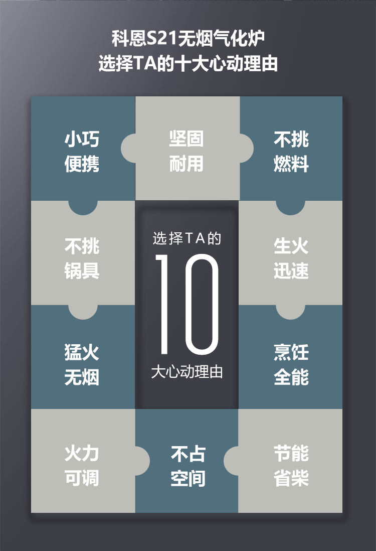 科恩無煙氣化爐S21,無煙環(huán)保,節(jié)能高效。以科技之名,守護山野呼吸的純凈,留存人間煙火的溫度。來一場說走就走的露營,享受春日暖陽和自然野趣。科恩,讓戶外烹飪更無憂,無煙氣化爐S21新升級,搭配12500RPM高轉(zhuǎn)速風機,無極調(diào)速,控火隨心。一切物體皆可燃,枯枝落葉化身燃料!