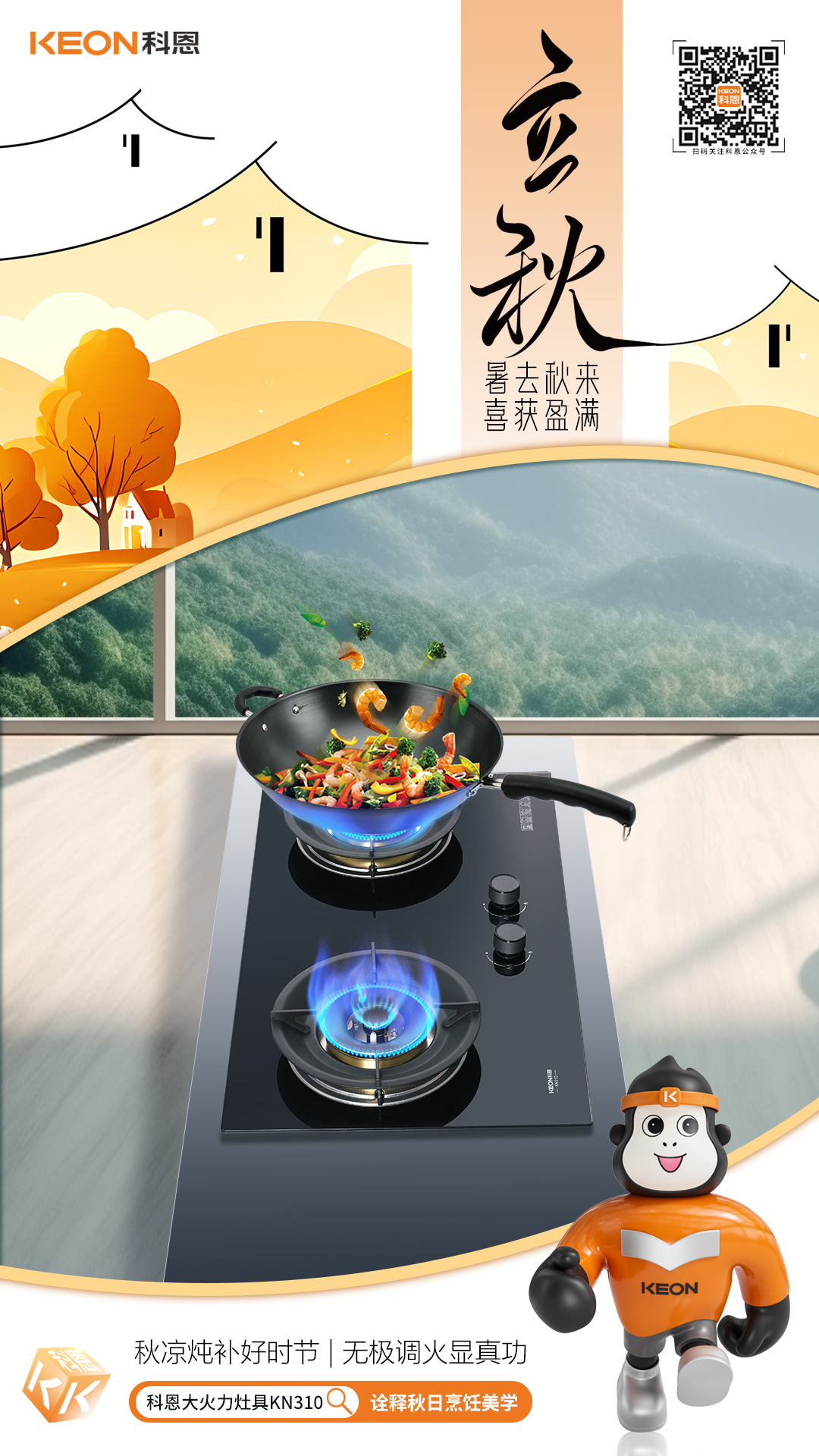 立秋煙火起,灶上煥新時。科恩匠心推出猛火灶具KN310,以“火候藝術”重塑廚房烹飪美學,讓每一味秋鮮都恰到好處,鎖住時節的醇厚與溫情,立秋貼秋膘,灶具煥新正當時!