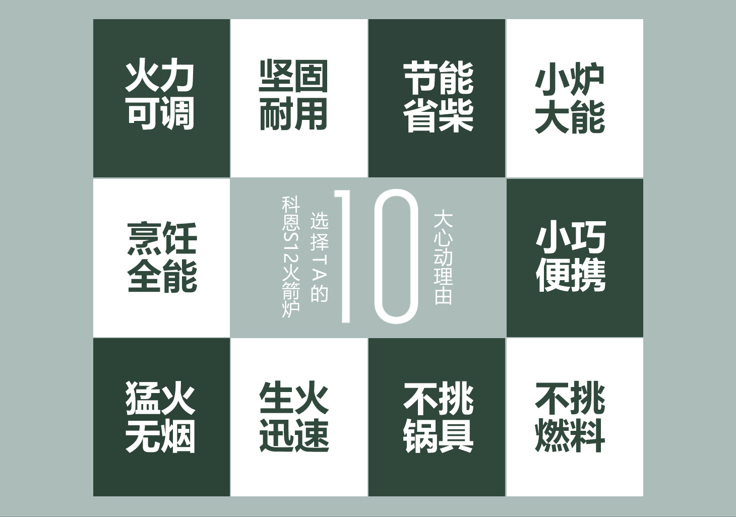 無煙猛火暢享秋味不銹鋼鏤空支撐腳,內收折疊,穩固承重,近郊野餐效率,S12速烹超給力重新定義野炊法則,攜科恩火箭爐S12,來一場秋日短途出行輕便與實用全都擁有一機打造移動米其林廚房。