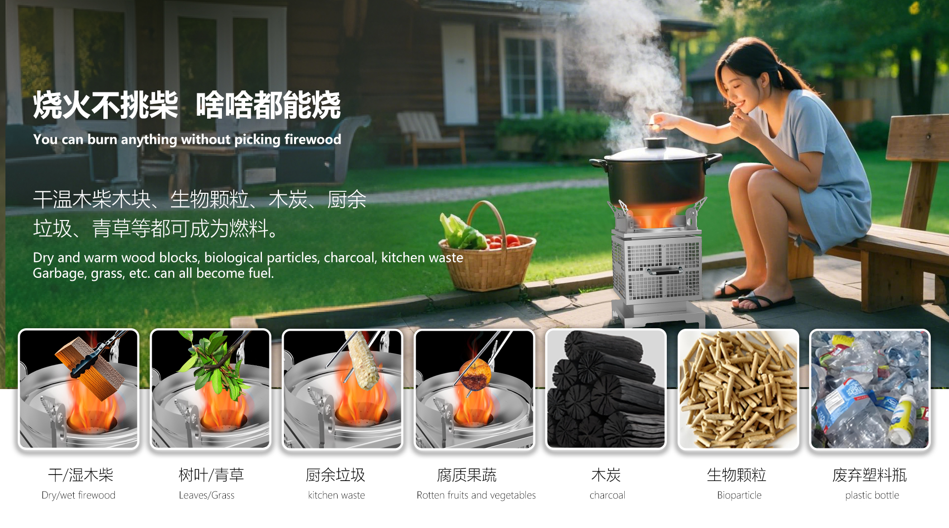 萬物皆燃,不挑燃料。干濕木塊,枯枝敗葉,煤炭青草,隨手可得的可燃物,都是能量源泉無需特意采購,現(xiàn)撿樹枝即能用。告別燃料焦慮,戶外烹飪更隨心,節(jié)能省柴,環(huán)保出行無負(fù)擔(dān)。點(diǎn)火速燃,猛火無煙。紙巾細(xì)枝,輕松引燃不費(fèi)力,風(fēng)機(jī)助力,生火速度超預(yù)期,3D繞流爐膛,科學(xué)供氧促燃燒,初次燃燒到高效燃燒真正無煙塵,爆炒不嗆鼻,圍爐無煙擾。
