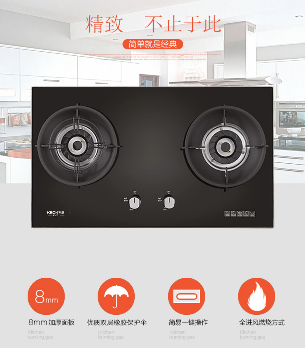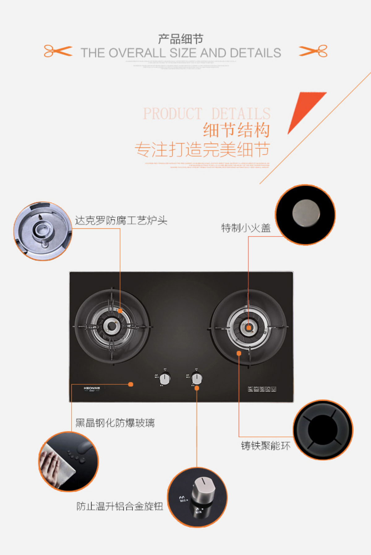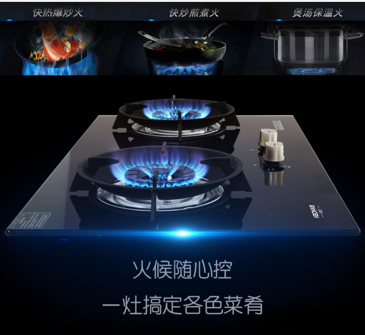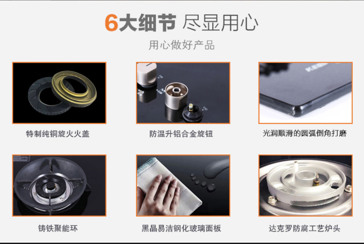 - 特制小火蓋,火藍有力,熱效率達65%-67%,高于一級能效標準。