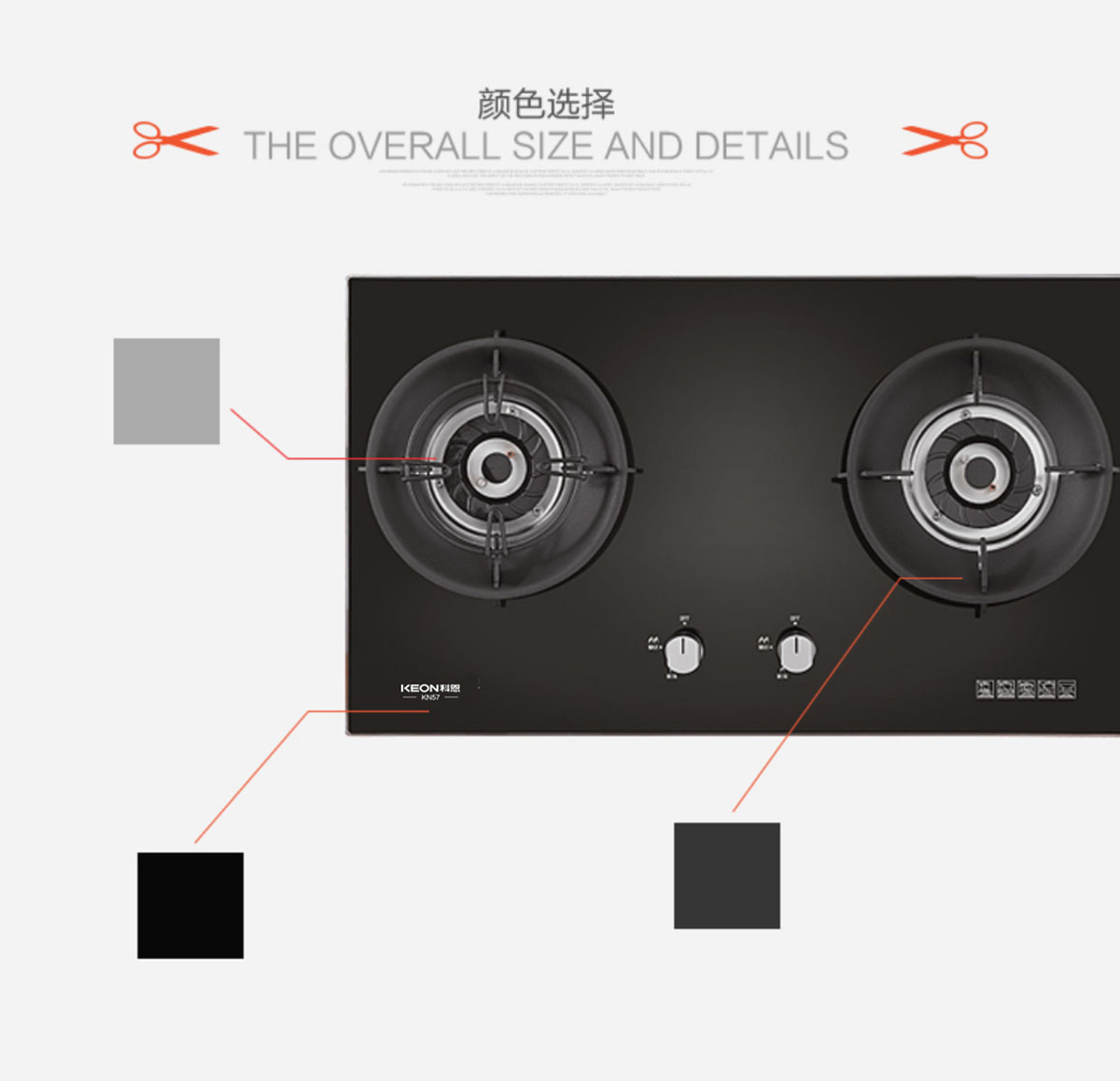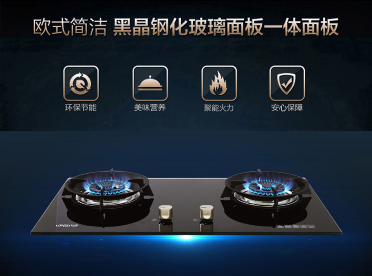 材 質(zhì):防爆鋼化玻璃面板、鋁合金瓷化爐頭、鑄鐵鍋架