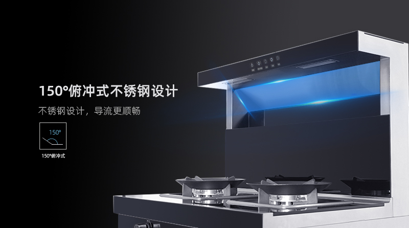 150°俯沖式不銹鋼設計,導流更順暢,科恩達磁吸網板,經久耐用易拆卸