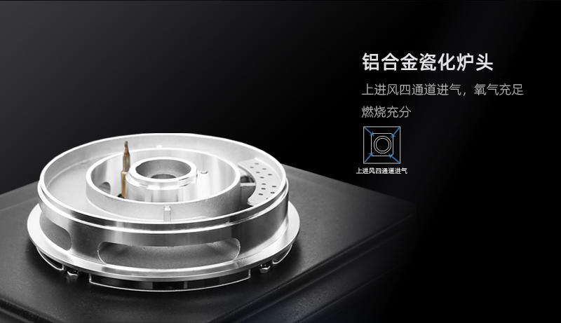 5.0kW大火力猛火快烹,58純銅火蓋,鋁合金瓷化爐頭,上進風四通道進氣