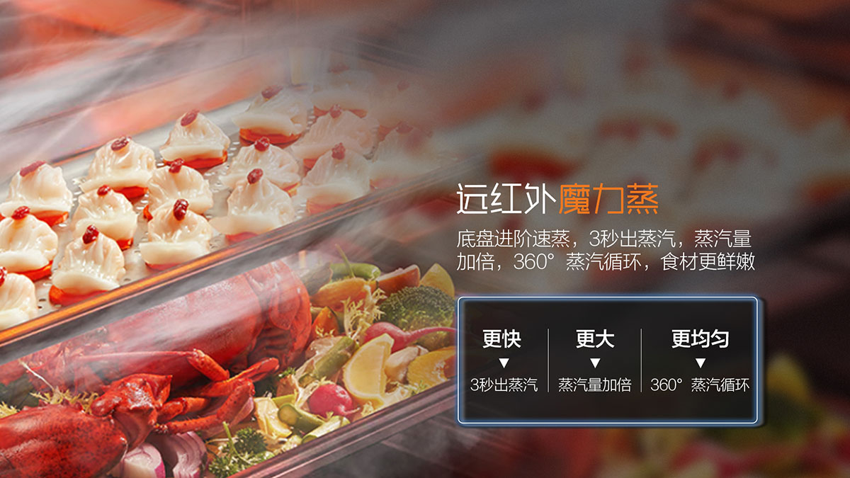 - 遠紅外魔力蒸,底盤進階速蒸,360°蒸汽循環,3秒出蒸汽,鎖鮮食材