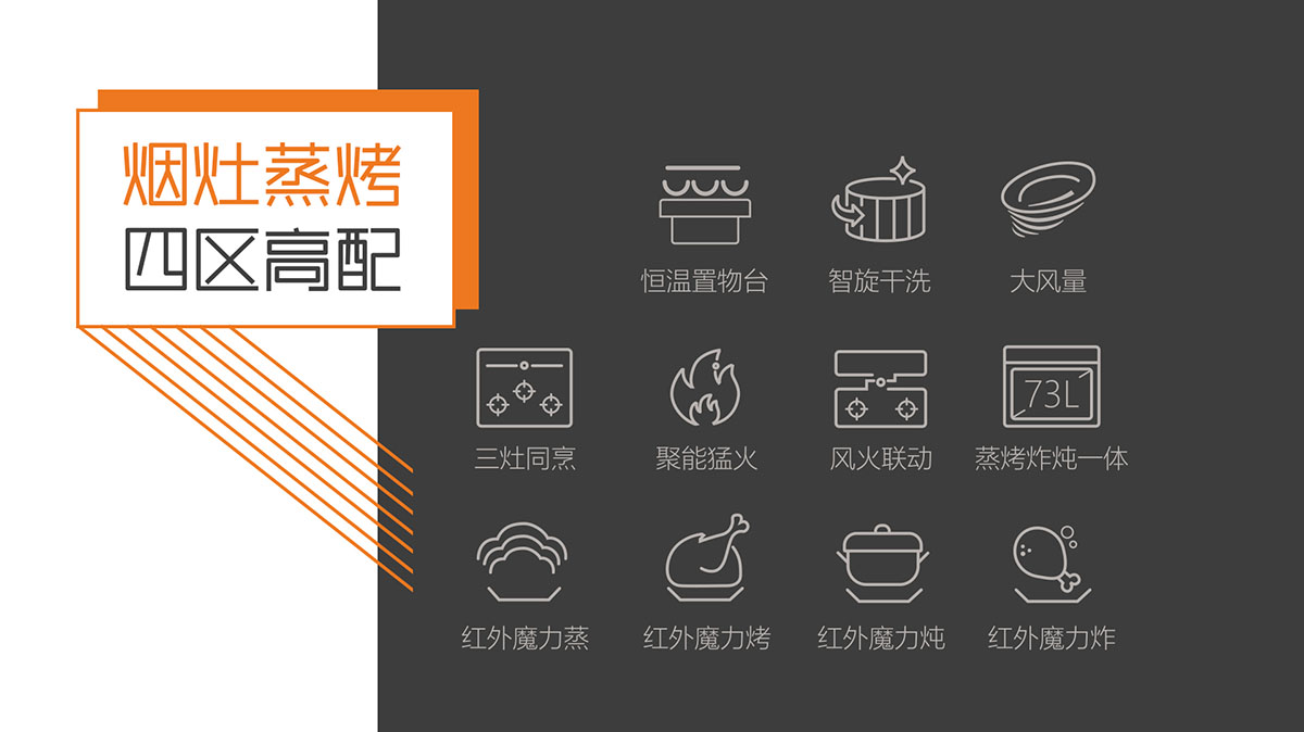 - 八大模式四大輔助功能,73L大空量,蒸烤炸燉一體,智能廚房一步到位