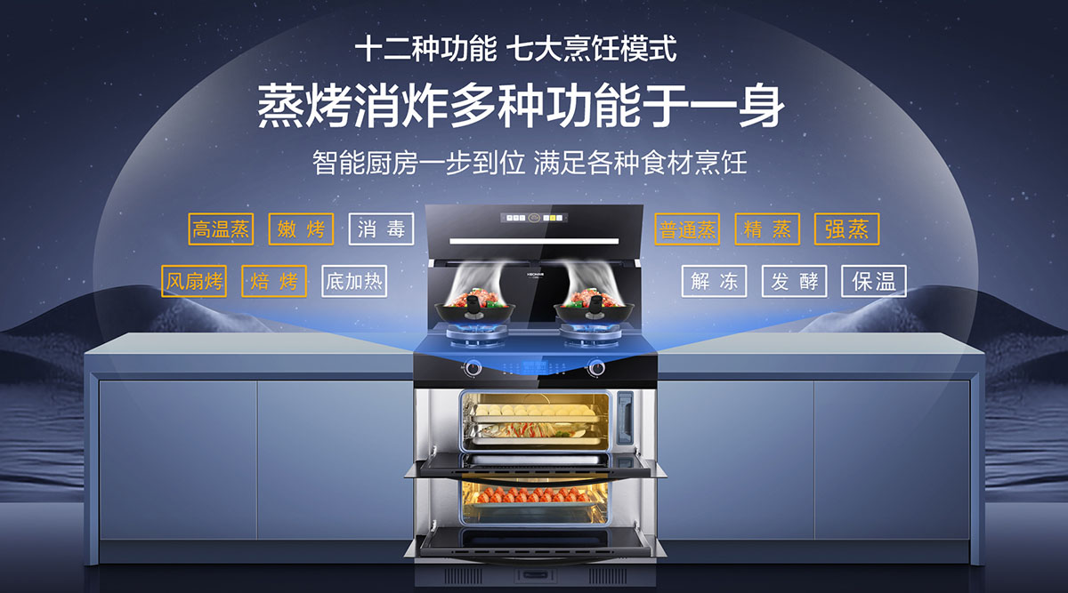 蒸烤消一體,智能廚房一步到位,滿足各種食材烹飪