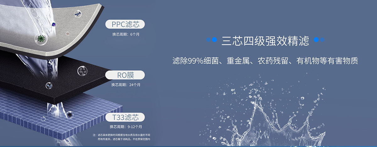 - 三芯四級強(qiáng)效精濾,濾除99%細(xì)菌重金屬