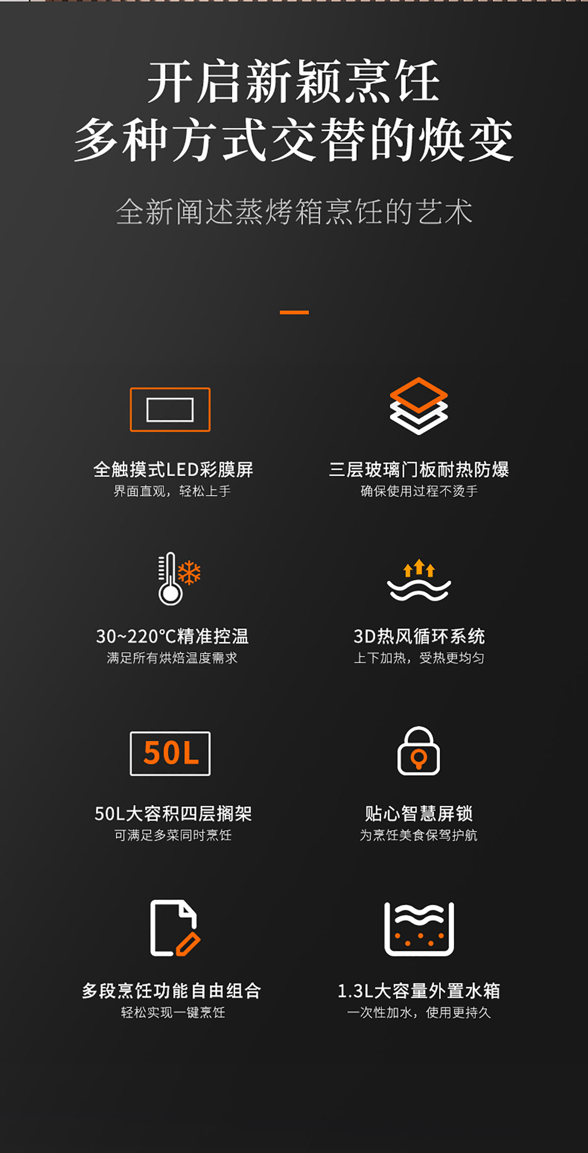 三層玻璃門板耐熱防爆,確保使用過程不燙手