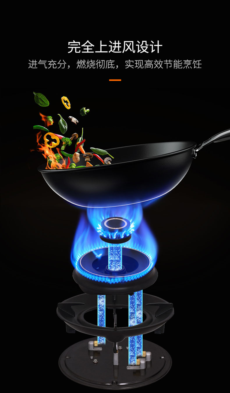 - 全上進(jìn)風(fēng)設(shè)計,補氧充分,燃燒徹底,實現(xiàn)高效節(jié)能烹飪