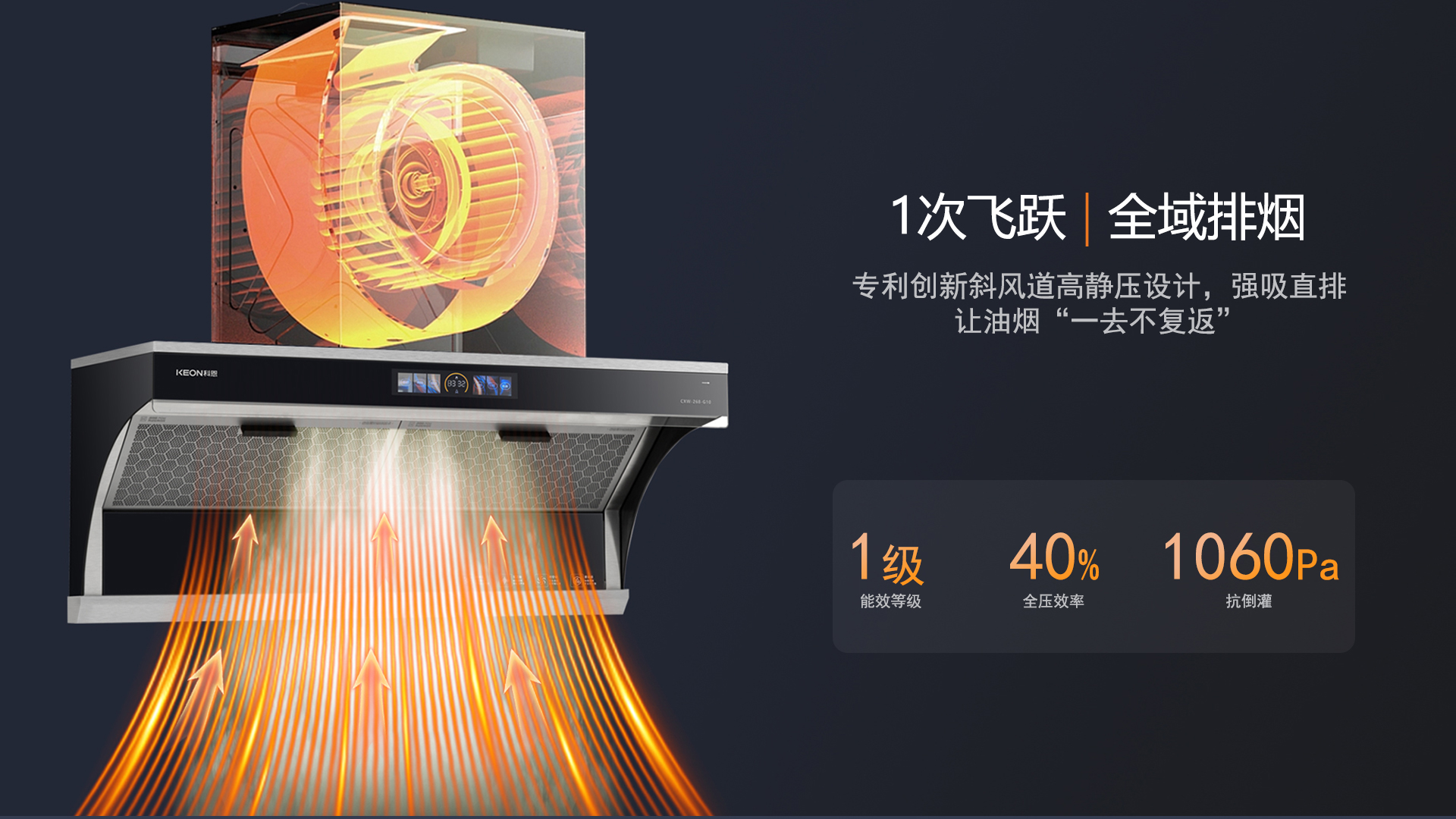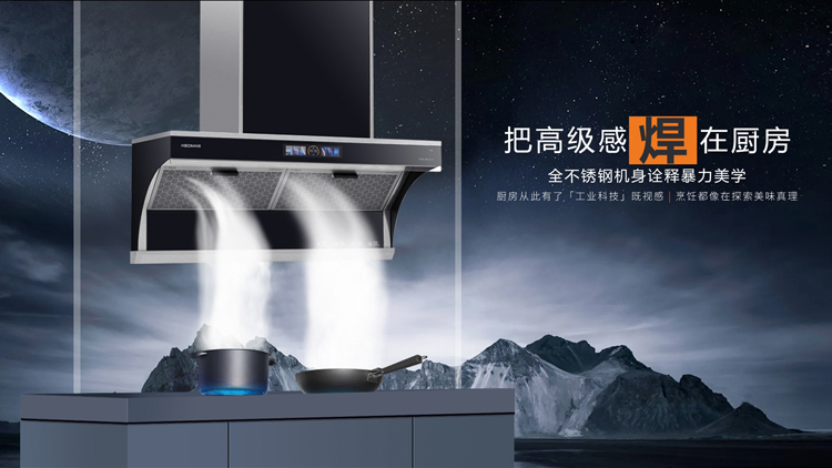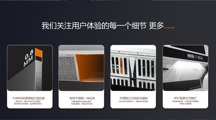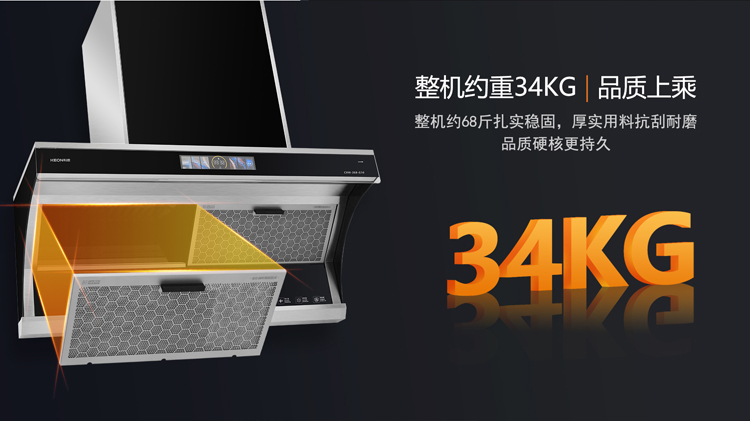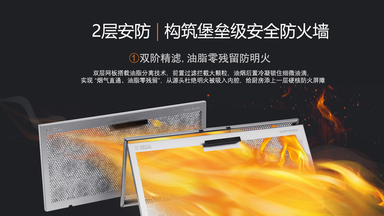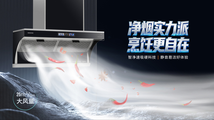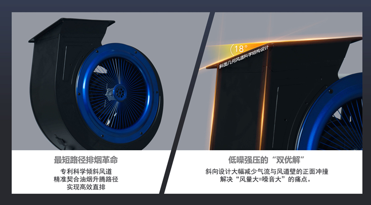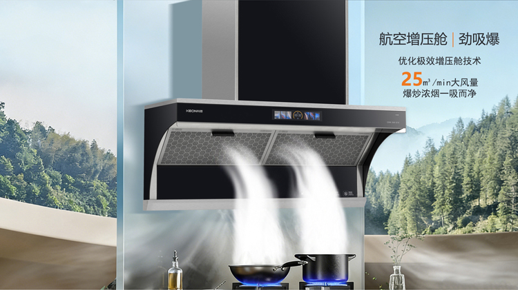 - 極效增壓艙,25m³/min大風量,爆炒濃煙一吸而凈