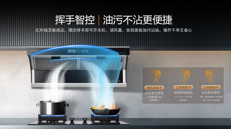 - 揮手智控,油污不沾更便捷,操作干凈又省心