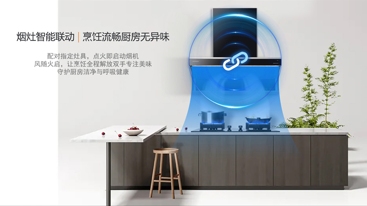 - 煙灶智能聯動,風隨火啟,烹飪流暢廚房無異味