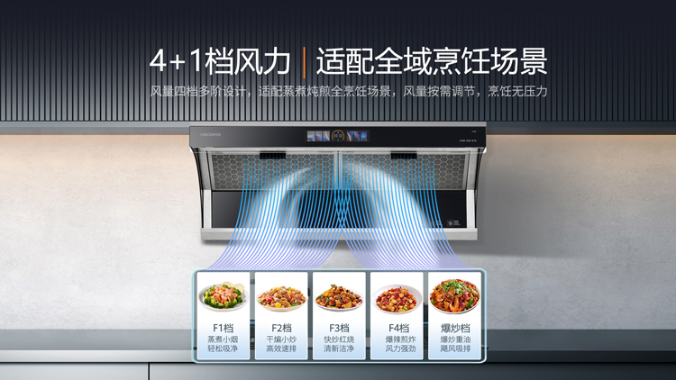 - 4+1檔風力,適配全域烹飪場景,適配蒸煮燉煎全烹飪場景