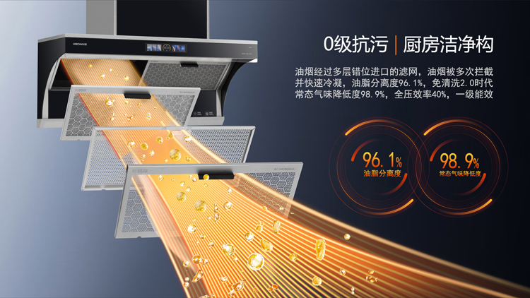 - 易潔仿生荷葉科恩達冷凝網,油脂分離度高達96.1%