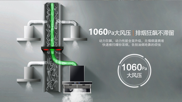 - 智能變頻巡航,無懼公共煙道烹飪高峰,拒絕油煙倒灌