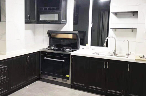 科恩湖南經(jīng)銷商提供的D101集成灶和蒸箱廚房實(shí)景