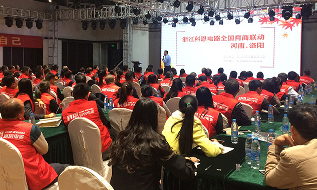 Detail >>10月16日,浙江科恩電器河南洛陽經銷商峰會在大為玖朝酒店隆重召開,本次會議旨在用科學務實的實踐經驗與標準來幫助經銷...