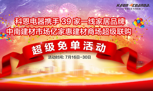 Detail >>7月16日—30日,為期15天的中南建材市場億家惠建材商場超級聯購大免單活動火熱舉辦中,此次活動由浙江科恩電器牽頭,...